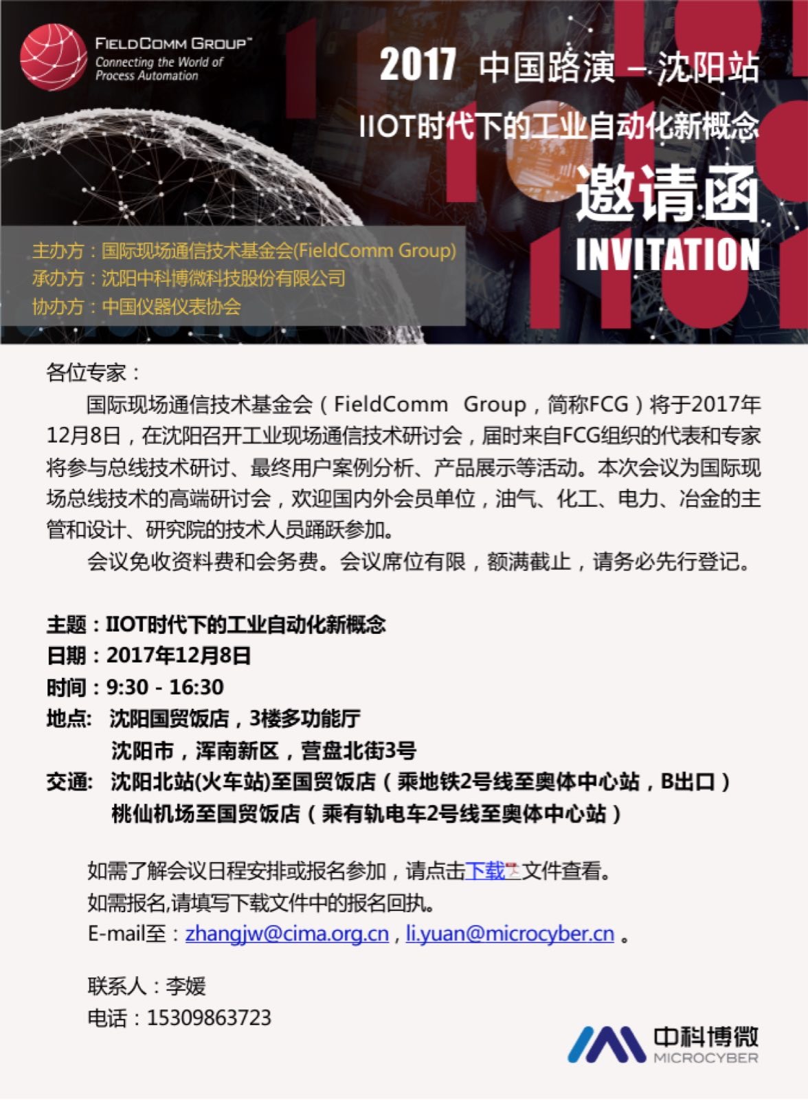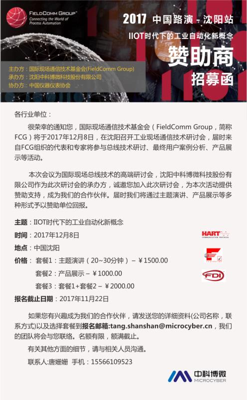 “IIOT時(shí)代下的工業(yè)自動(dòng)化新概念”2017 FCG中國路演–沈陽站會(huì)議通知