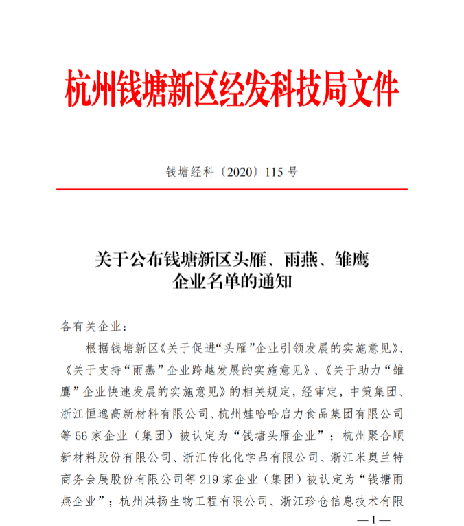 此次認定,囊括了聚合順新材料、 浙江傳化化學品、杭州百事可樂等多家知名企業。美儀也經過層層篩選審核,最終憑借“互聯網+自動化”模式下強勁的發展勢頭順利通過“錢塘雨燕企業”認定。