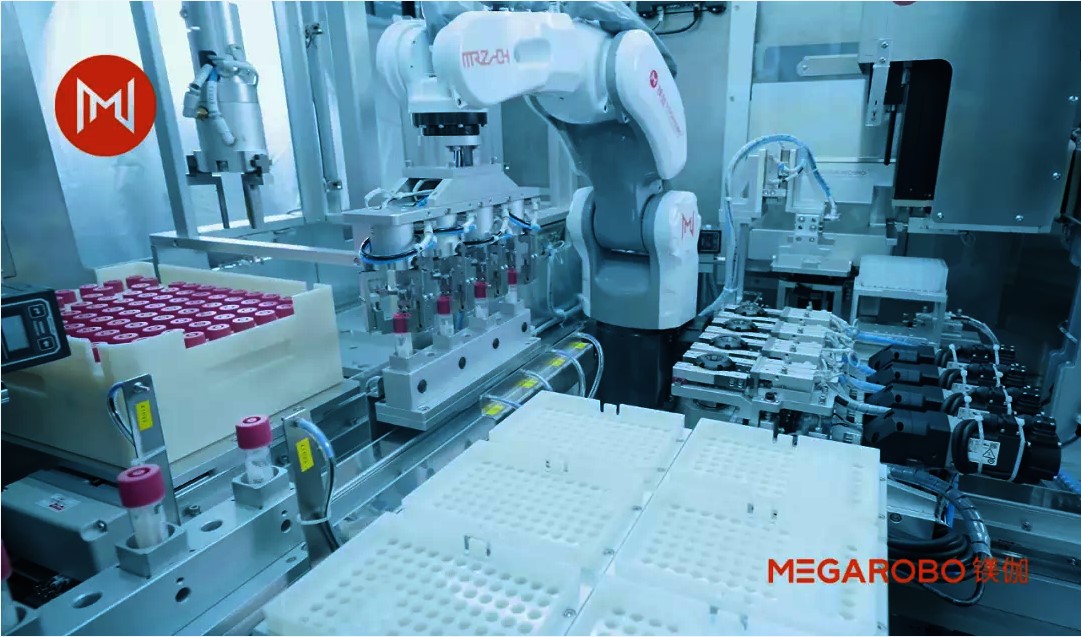 作為行業(yè)領(lǐng)先的生命科學(xué)領(lǐng)域自動化產(chǎn)品與解決方案服務(wù)商,在此次青島大規(guī)模檢測行動中,鎂伽機(jī)器人積極投身于抗疫一線,這也是國內(nèi)首次將機(jī)器人應(yīng)用于大規(guī)模核酸檢測,實(shí)現(xiàn)核酸檢測樣品前處理的高通量全自動化,單組機(jī)器人日檢測量達(dá)26萬人次,相當(dāng)于50多位經(jīng)驗(yàn)豐富的檢測員全天24小時(shí)不間斷的工作量總和。