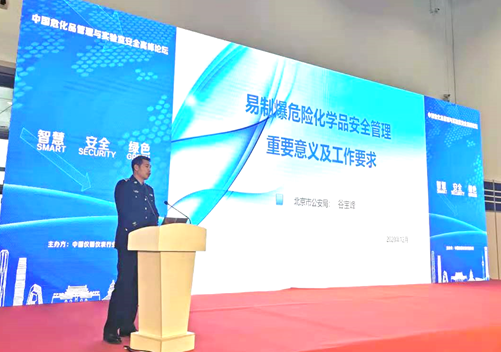 北京市公安局治安管理總隊(duì)危險(xiǎn)物品管理支隊(duì)谷寶峰中隊(duì)長首先上臺(tái)演講。谷隊(duì)長以“易致爆危險(xiǎn)化學(xué)品安全管理重要意義及工作要求”為題,通過引用國內(nèi)外及其在工作中偵辦的真實(shí)案例生動(dòng)的講述了易致爆危險(xiǎn)化學(xué)品、易制毒危險(xiǎn)化學(xué)品對(duì)人身和社會(huì)帶來的嚴(yán)重危害,著重介紹了相關(guān)法律法規(guī),闡述了做好?;饭芾韺?duì)于建設(shè)“平安中國”的重要意義。