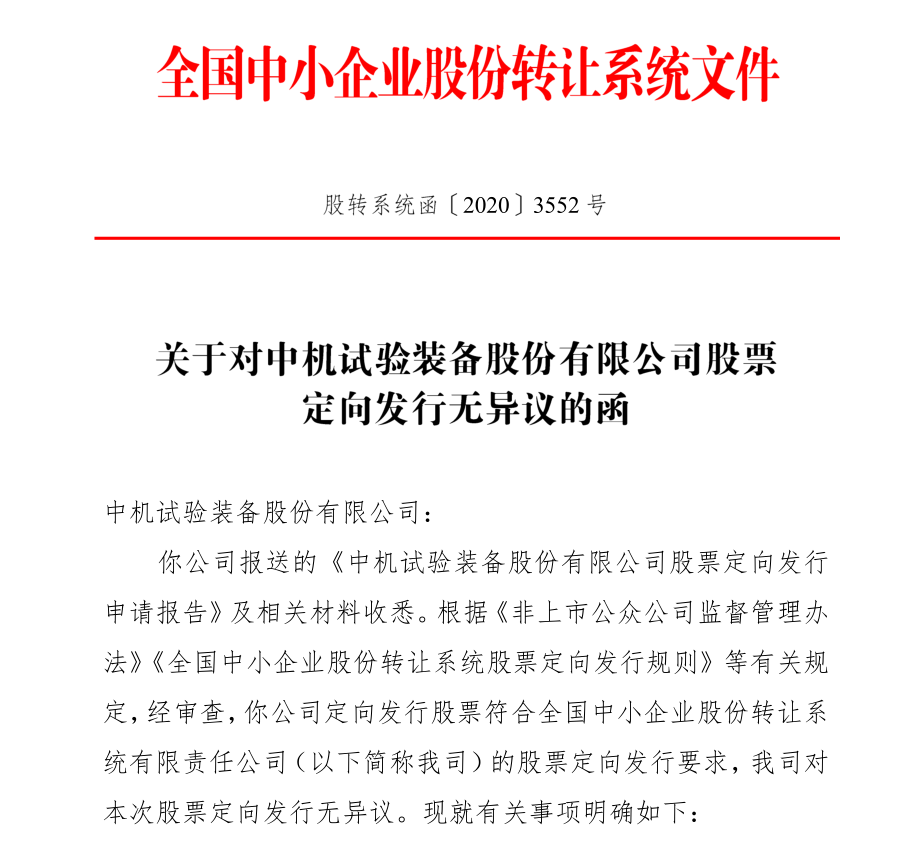 2020年12月25日,中機試驗裝備股份有限公司(以下簡稱中機試驗)成功發(fā)行1975萬股,募集資金1億元,圓滿完成2020年股票發(fā)行工作。