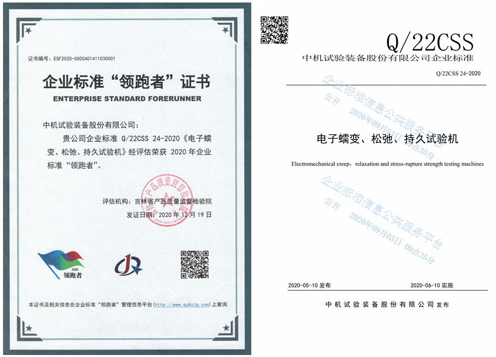 經(jīng)過對產(chǎn)品的基礎(chǔ)指標、核心指標、創(chuàng)新性指標、產(chǎn)品單項指標等維度的評估,中機試驗憑企業(yè)標準Q/22CSS 24-2020《電子蠕變、松弛、持久試驗機》榮獲2020年企業(yè)標準“領(lǐng)跑者”稱號,Q/22CSS 24-2020《電子蠕變、松弛、持久試驗機》對應(yīng)的R系列電子蠕變、松弛、持久試驗機,是中機試驗的明星產(chǎn)品,該機型由中機試驗與德國DOLI公司聯(lián)合研制開發(fā),并根據(jù)市場需求,經(jīng)過多次系統(tǒng)的升級,其控制系統(tǒng)采用德國DOLI公司為中機試驗蠕變試驗機定制開發(fā)的EDC數(shù)字控制器,軟件系統(tǒng)采用雙方合作開發(fā)具有獨家使用權(quán)的 CreepTest試驗軟件和中機試驗自主開發(fā)的 Creep Test Expertv2.0軟件系統(tǒng),具有技術(shù)成熟穩(wěn)定,長時試驗可靠等特點,受到市場的廣泛歡迎,先后中得天津重型裝備、東方汽輪機、北科大、寶鋼研究院、浙江國檢、鋼研納克、海檢檢測、撫順特殊、 西北工業(yè)大學(xué)等多個大批量采購大單。