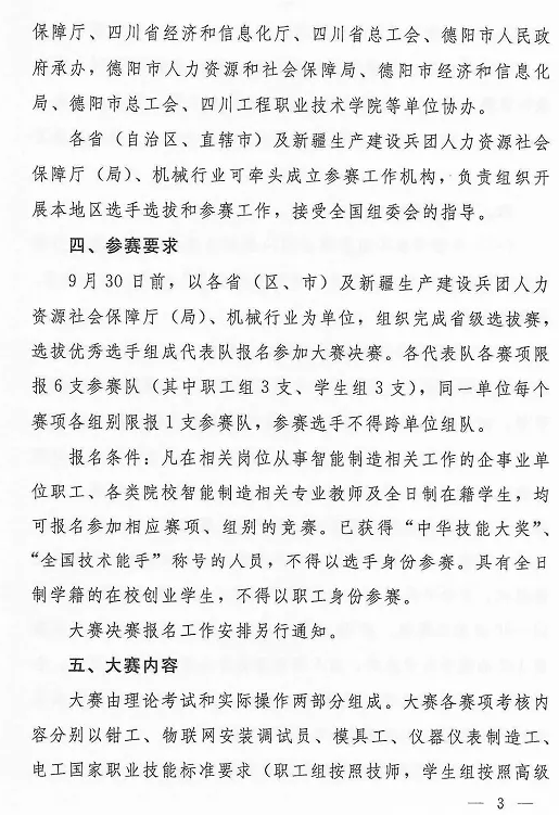 智能制造應用技術技能大賽的通知