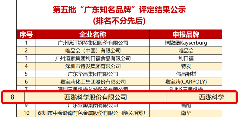 廣東知名品牌由廣東省企業(yè)品牌建設(shè)促進(jìn)會(huì)開展的品牌建設(shè)團(tuán)體標(biāo)準(zhǔn)評(píng)價(jià),是廣東品牌領(lǐng)域具權(quán)威性、專業(yè)性和廣泛性的綜合性品牌評(píng)價(jià)活動(dòng),獲評(píng)企業(yè)均為廣東頂級(jí)品牌(TOP BRAND),意味著西隴科學(xué)不僅是綜合實(shí)力受到社會(huì)廣泛認(rèn)可,同時(shí)還具備較高的品牌知名度、美譽(yù)度和信譽(yù)度。