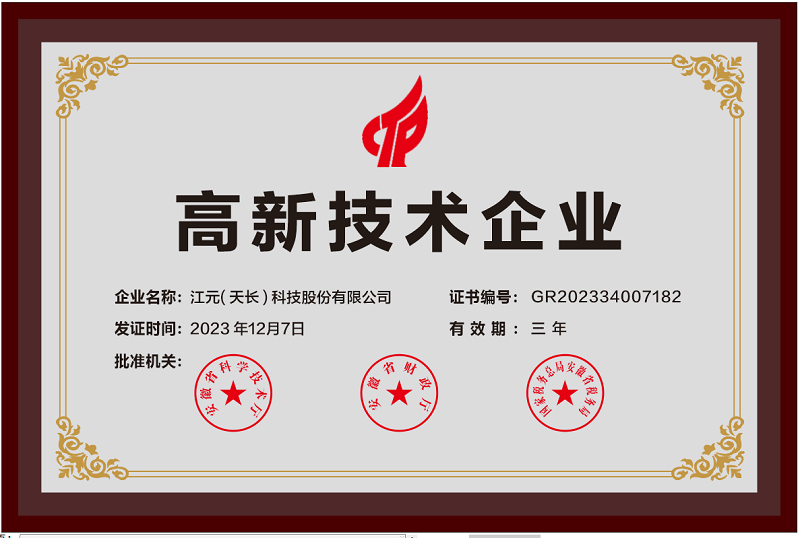 近日,全國(guó)高新技術(shù)企業(yè)認(rèn)定管理工作領(lǐng)導(dǎo)小組辦公室公布了安徽省認(rèn)定機(jī)構(gòu)2023年認(rèn)定報(bào)備的第三批高新技術(shù)企業(yè)備案名單,江元(天長(zhǎng))科技股份有限公司順利通過各部門聯(lián)合評(píng)審,獲得國(guó)家級(jí)高新技術(shù)企業(yè)認(rèn)證。這是繼兩年前,母公司江元(重慶)科技集團(tuán)股份有限公司獲得國(guó)高認(rèn)證后,江元集團(tuán)又一子公司獲得此殊榮。