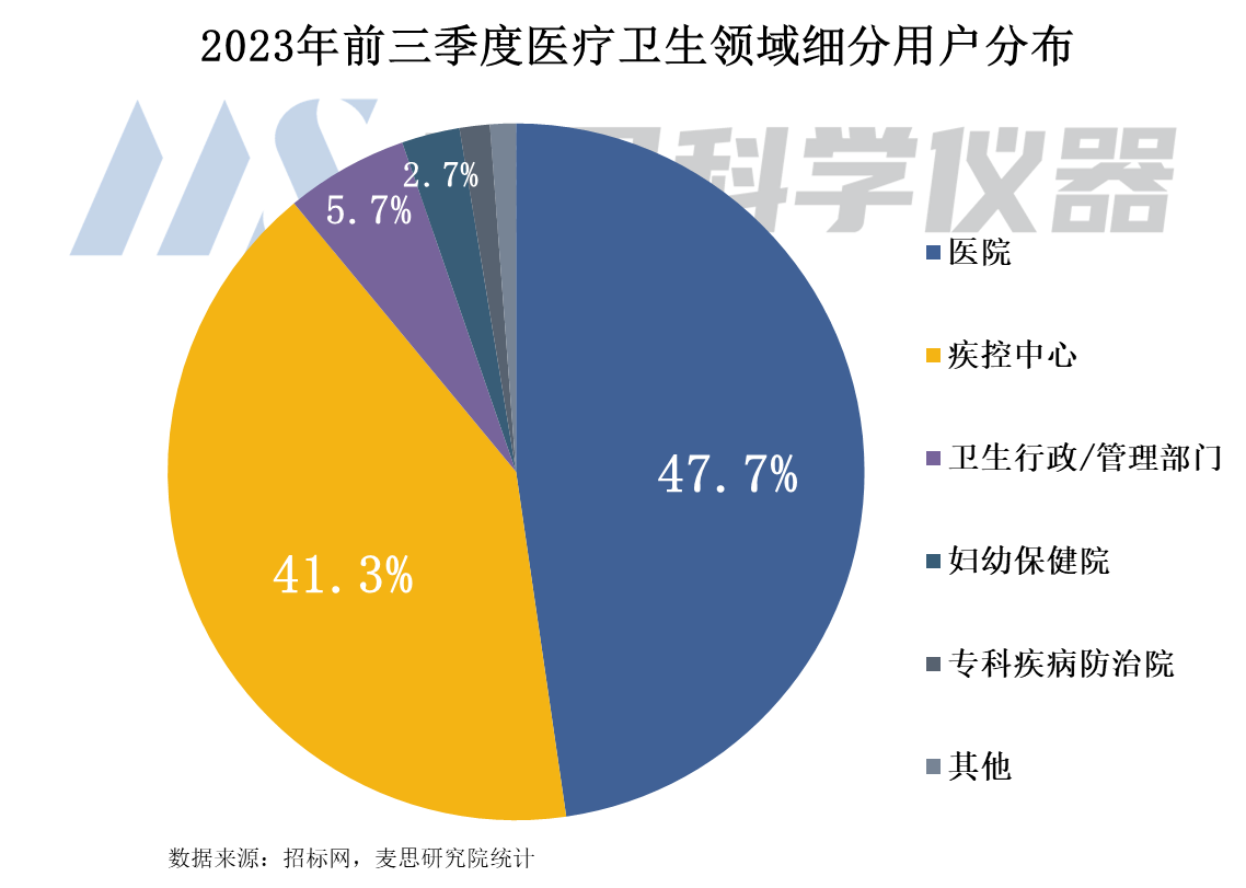 從醫(yī)療衛(wèi)生領(lǐng)域各客戶類型采購質(zhì)譜儀器的數(shù)量來看,醫(yī)院采購量占比排名第一,占比47.7%。其次是疾控中心,占比41.3%。