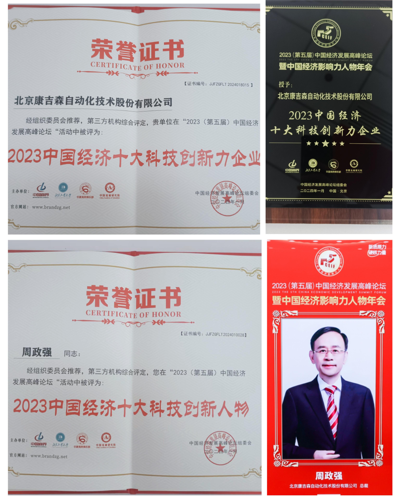 本次獎項評選經各專業媒體、權威機構和行業主管部門推薦,組委會嚴格審核認定,為康吉森榮譽頒發了“2023中國經濟十大科技創新力企業”,康吉森股份總裁、北京康吉森科技董事長周政強榮獲“2023中國經濟科技創新力人物”獎。周政強領導的康吉森集團在科技創新、品牌價值、市場表現、發展潛力等方面業績卓著,是中國經濟發展進程中涌現出來的先進典型。