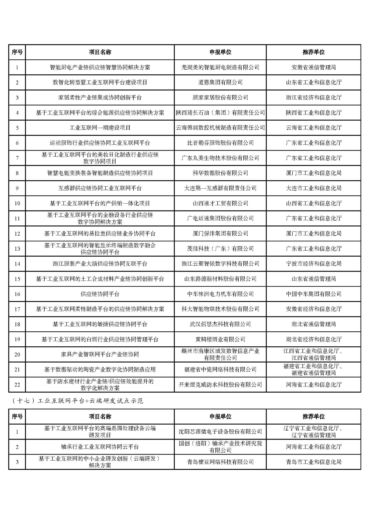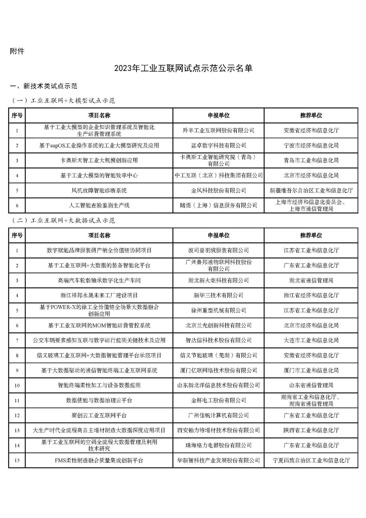附件:2023年工業(yè)互聯(lián)網(wǎng)試點示范公示名單