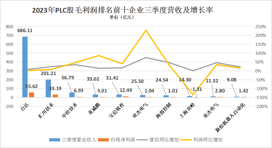 在眾多國產(chǎn)PLC廠商中,匯川技術(shù)無疑是最具代表性和影響力的一家。憑借其卓越的技術(shù)實(shí)力和創(chuàng)新能力,匯川技術(shù)成功拿下了變頻器、伺服電機(jī)、PLC三大件的國內(nèi)市場占有率第一。其伺服電機(jī)的市占率高達(dá)17%(當(dāng)前實(shí)際更高),甚至對西門子、安川等外資品牌也形成了戰(zhàn)略優(yōu)勢。匯川技術(shù)的巔峰市值超過2300億,營業(yè)額超過230億,成為國產(chǎn)PLC廠商中的佼佼者。