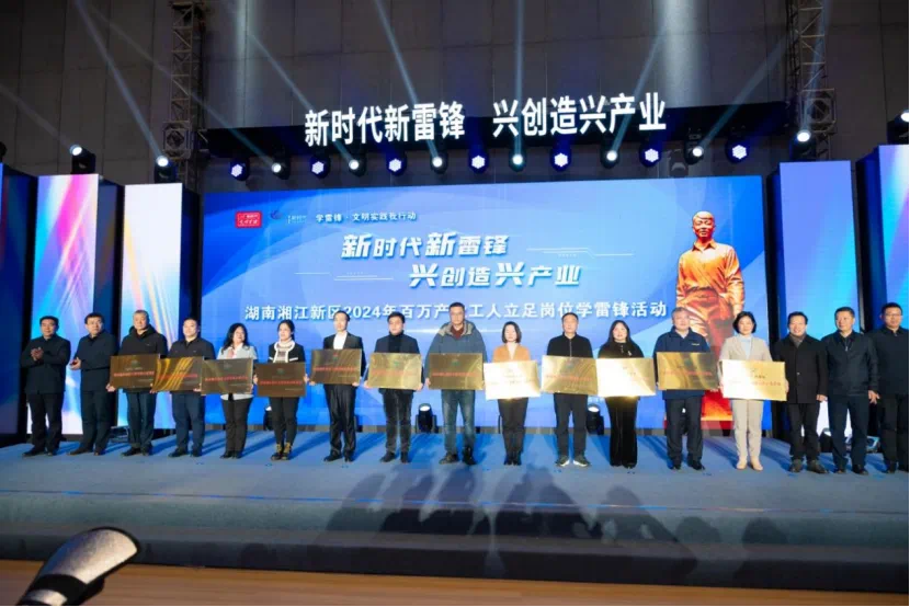 3月5日,湖南湘江新區(qū)2024年百萬產(chǎn)業(yè)工人立足崗位學(xué)雷鋒活動在世界計算·長沙智谷項目數(shù)字空間站舉行。本次活動共計12家單位獲得湖南湘江新區(qū)“新時代 新雷鋒”文明實踐示范基地授牌。