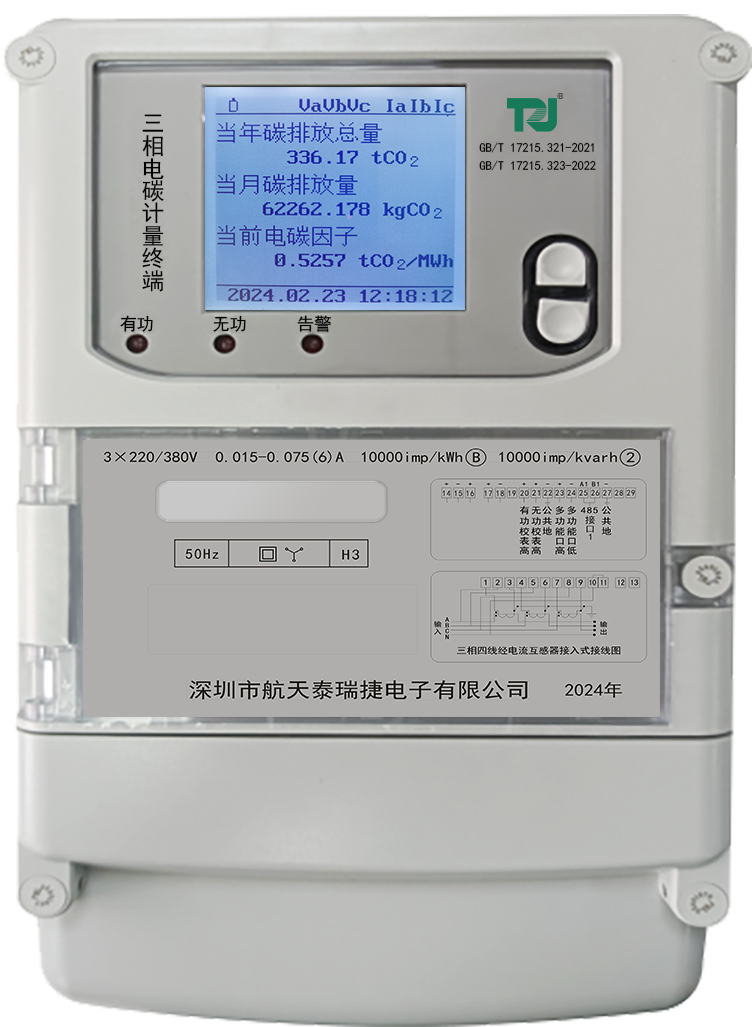 近日,航天泰瑞捷成功研制首款電碳計(jì)量終端(“電碳表”)。該款電碳表是在航天泰瑞捷自研的碳計(jì)量模型算法基礎(chǔ)上研發(fā),它不僅具有傳統(tǒng)的電能計(jì)量功能,還能配合系統(tǒng)端動(dòng)態(tài)計(jì)算更新電碳因子的準(zhǔn)確數(shù)值,實(shí)時(shí)顯示累計(jì)碳排放量數(shù)據(jù),為用戶提供準(zhǔn)確的碳排放量。該款電碳表根據(jù)用戶的用電情況,實(shí)時(shí)調(diào)整不同的電碳因子,實(shí)時(shí)計(jì)算并給出企業(yè)用電帶來(lái)的碳排放量,體現(xiàn)電力生產(chǎn)源頭的時(shí)間和地域差異。用戶可實(shí)時(shí)掌握自身碳排放情況,為制定更加綠色低碳的生產(chǎn)模式提供依據(jù)。