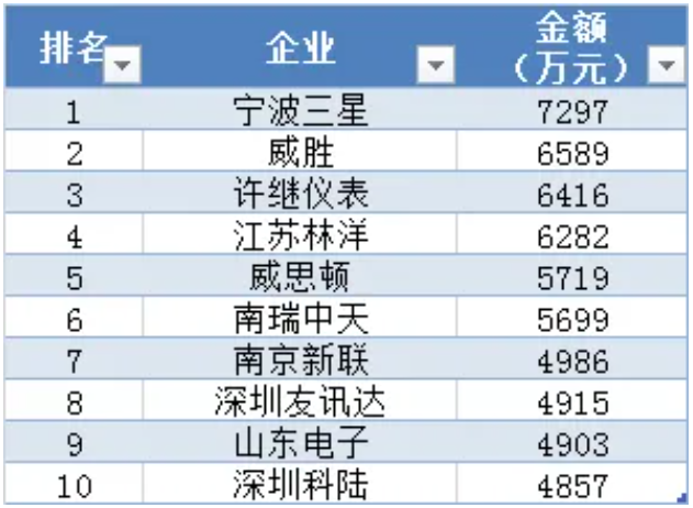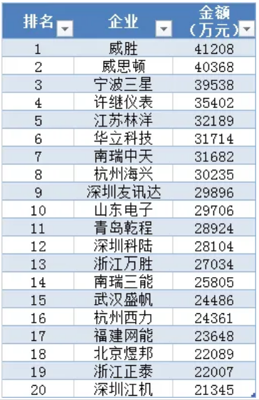 國網(wǎng)2024_1批次電能表和用電信息采集項目中標金額前二十企業(yè)