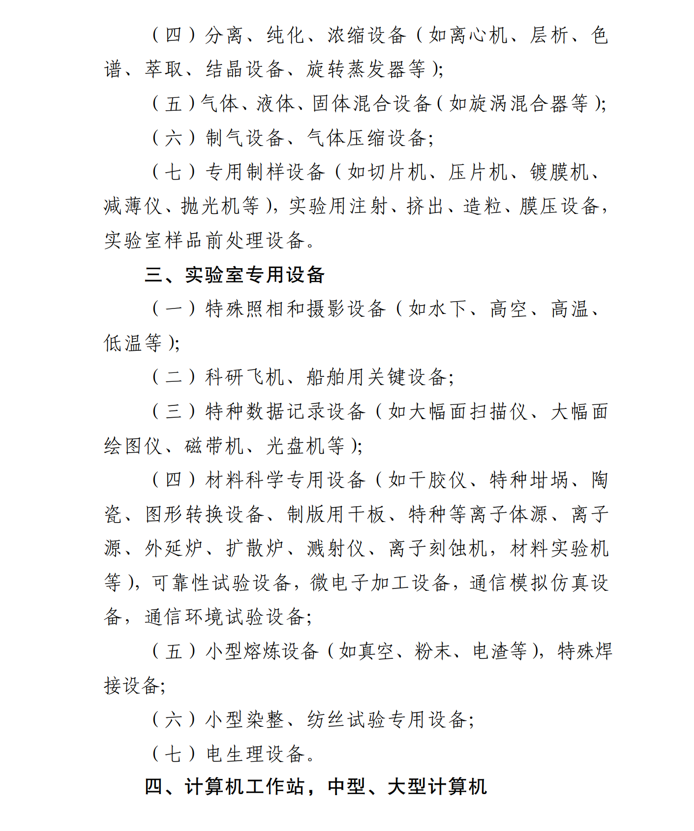 主要涉及四大門類:實驗環(huán)境方面、樣品制備設備和裝置、實驗室專用設備、計算機工作站,中型、大型計算機。