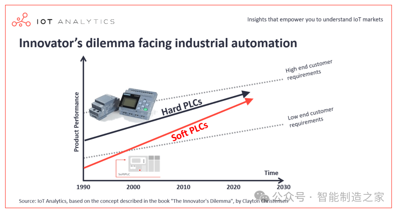 與此同時,軟PLC的增長勢頭引發了工業自動化供應商面臨的“創新者的困境”。以倍福為例,其銷售額的快速增長反映了軟PLC技術的顛覆性潛力。然而,現有供應商并未忽視這一威脅,通過收購和技術革新,許多大型自動化企業也紛紛加入軟PLC市場。