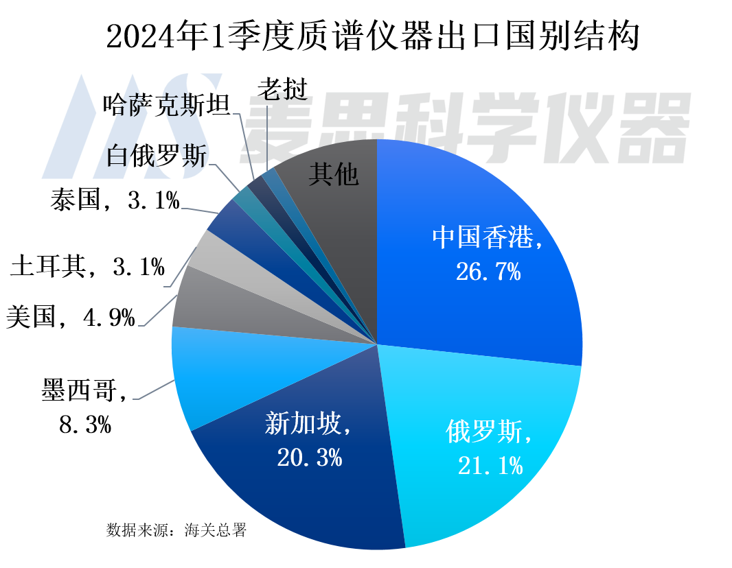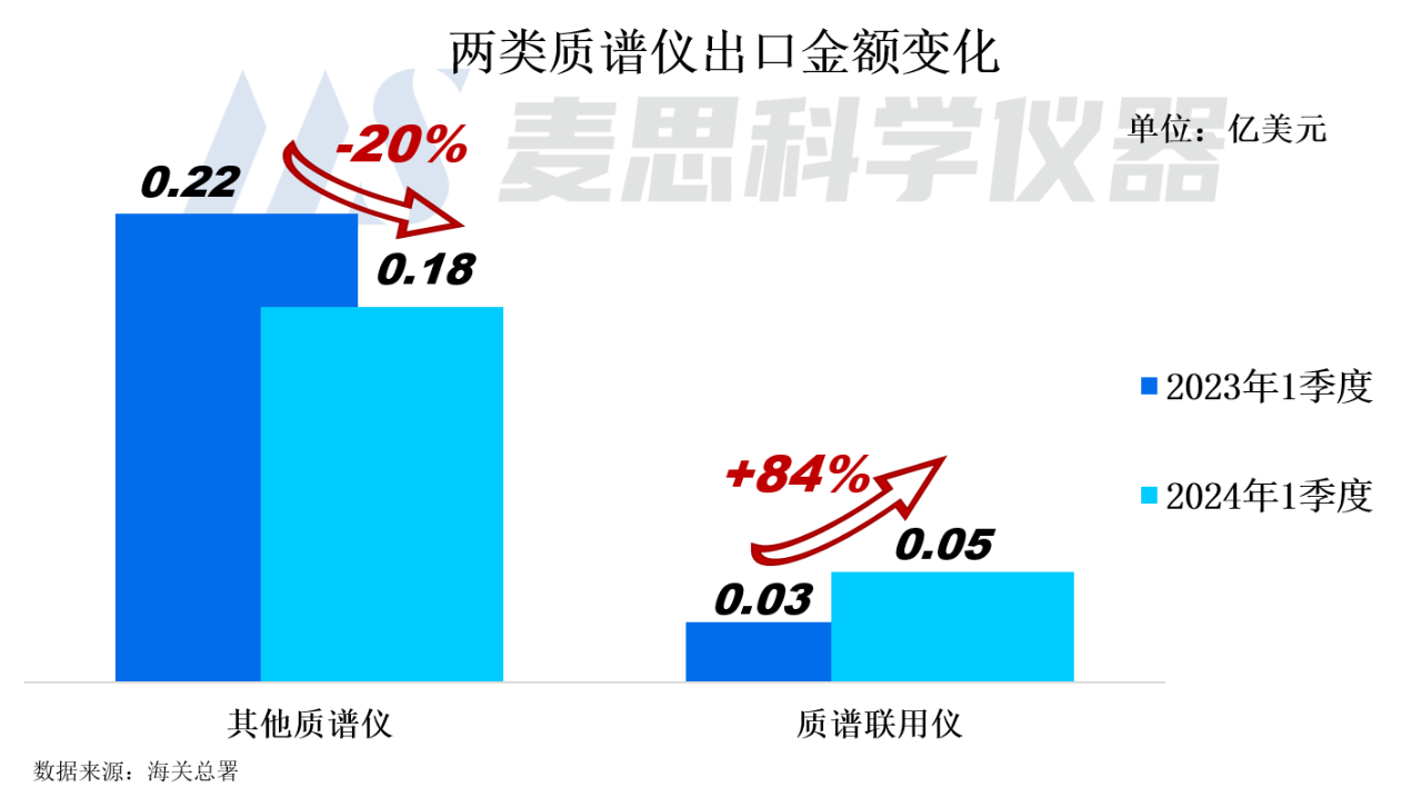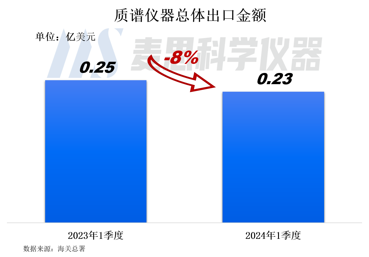 2024年1季度我國質(zhì)譜儀器出口金額為2300萬美元(約合人民幣1.64億元),同比下降8%。