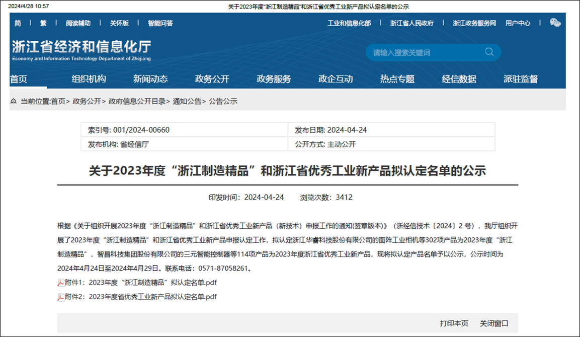 “浙江制造精品”旨在重點選擇一批具有自主知識產權和自主品牌、技術水平高、附加值大、產業能級高、帶動作用強的產品,以提升企業市場競爭能力和產業整體水平,加快浙江產業轉型升級和新興產業培育發展。被認定為“浙江制造精品”的產品將優先享受國家“互聯網+”政府采購政策。該項榮譽含金量高,入選目錄的產品,需要聚焦細分市場且在細分市場占據一定的主導地位;產品質量和主要技術性能指標處于國內同類產品領先水平或國際較好水平;擁有自身關鍵核心技術及自主知識產權;有較好的品牌知名度和美譽度。