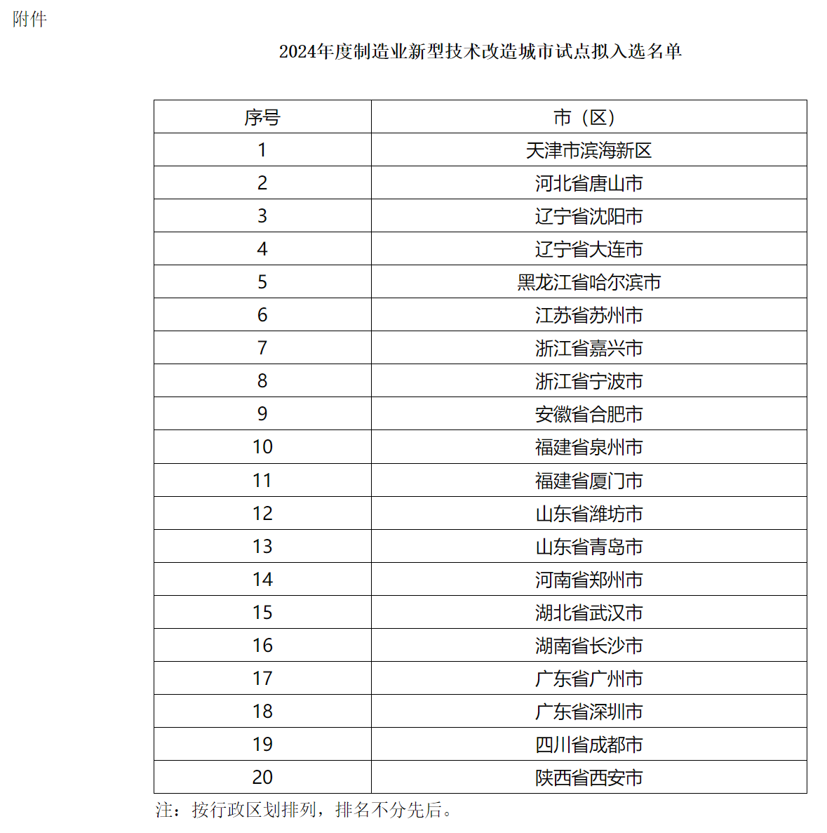 4月29日,工信部公示2024年度制造業新型技術改造城市試點擬入選名單,共計20個,公示期為2024年4月29日-2024年5月9日。
