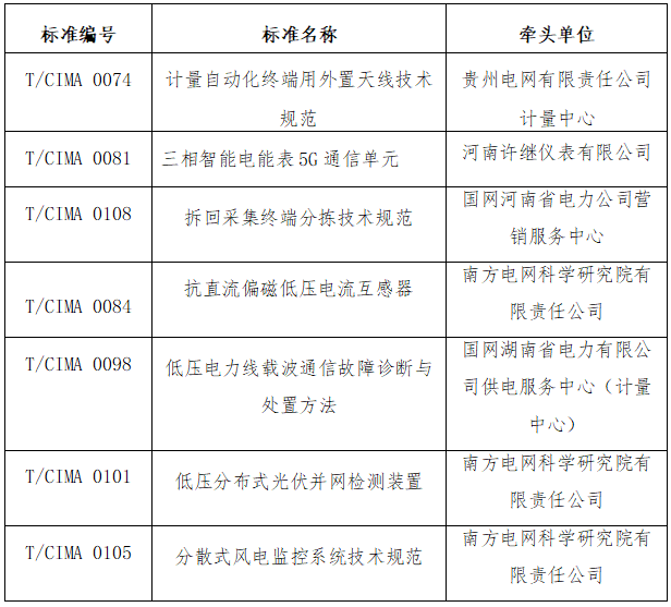 2024年4月 22-23日,中國儀器儀表行業(yè)協(xié)會(以下簡稱“協(xié)會”) 以視頻會議形式組織召開了《計量自動化終端用外置天線技術(shù)規(guī)范》等7項團體標(biāo)準(zhǔn)(項目信息詳見附表)送審稿審查會。來自國網(wǎng)山東省電力公司電力科學(xué)研究院、廣東電網(wǎng)有限責(zé)任公司計量中心、河南省計量科學(xué)研究院、國網(wǎng)計量中心有限公司、國網(wǎng)湖北省電力有限公司電力科學(xué)研究院、國網(wǎng)河南省電力公司營銷服務(wù)中心(計量中心)、國網(wǎng)山東省電力公司、國網(wǎng)重慶市電力公司營銷服務(wù)中心、黑龍江省電工儀器儀表工程技術(shù)研究中心有限公司的九位專家組成審查組,國網(wǎng)山東省電力公司電力科學(xué)研究院的徐民教授級高工擔(dān)任組長。會議由協(xié)會副秘書長程紅主持。協(xié)會及電工儀表分會的團體標(biāo)準(zhǔn)工作人員、標(biāo)準(zhǔn)主要起草人參加了本次會議。