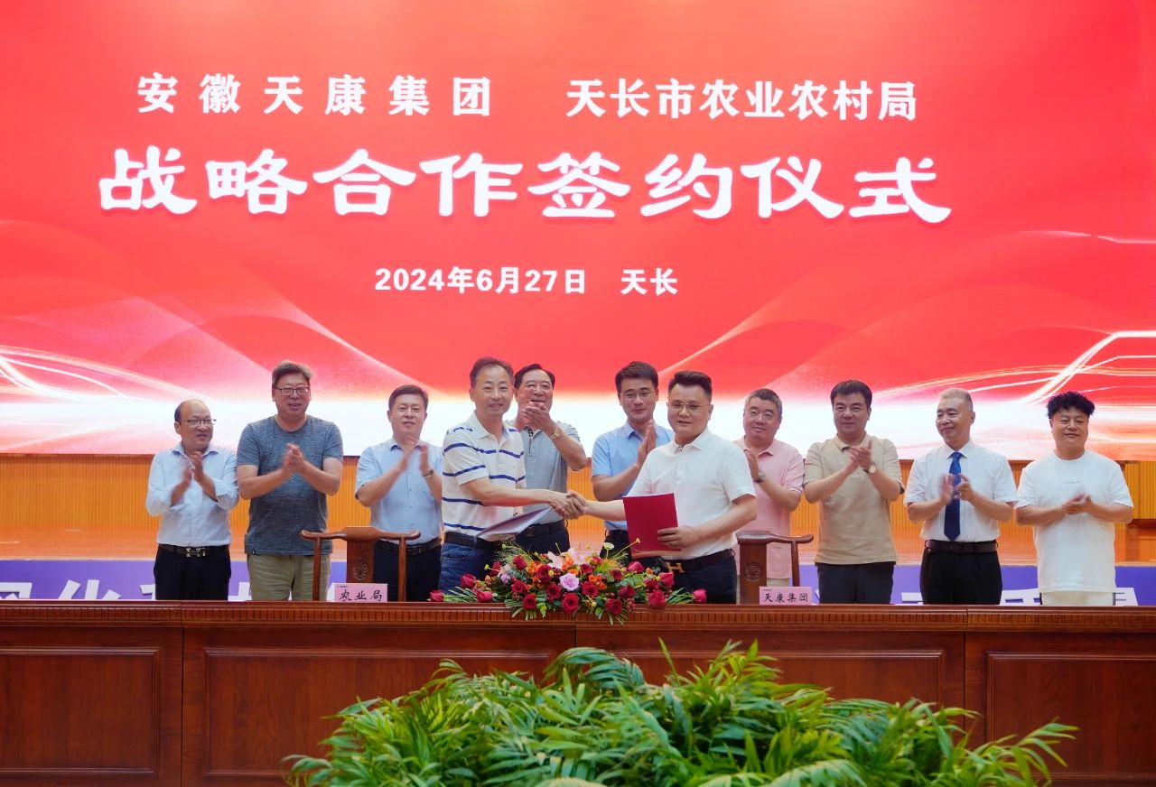 儀式上,安徽天康集團(tuán)總經(jīng)理毛文章與天長(zhǎng)市農(nóng)業(yè)農(nóng)村局局長(zhǎng)王德佑代表雙方簽訂戰(zhàn)略合作協(xié)議書,與會(huì)領(lǐng)導(dǎo)共同見證了這一具有重大意義的時(shí)刻。