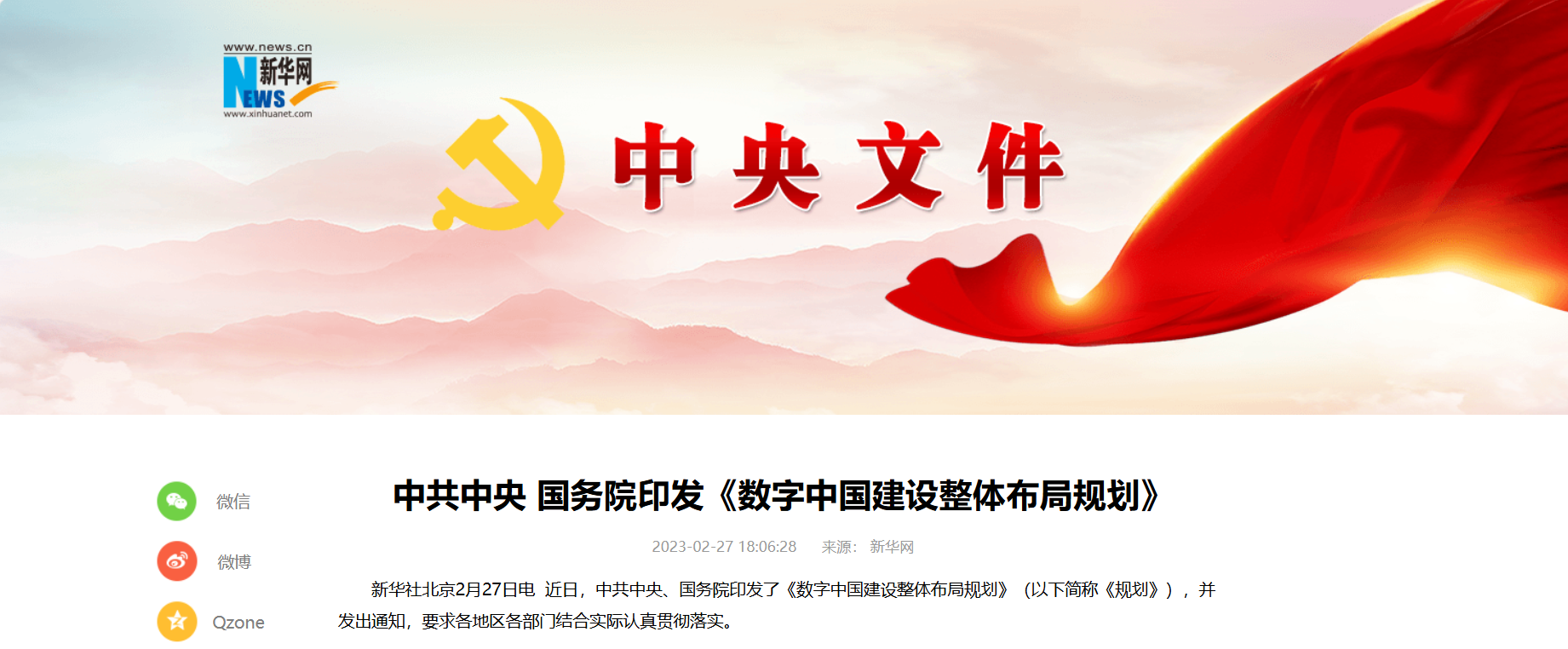2023年《數(shù)字中國建設整體布局規(guī)劃》出臺