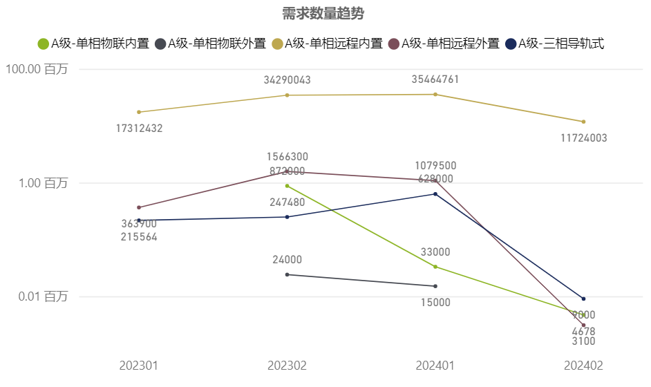 集中器部分33.89萬只/臺,需求環比下降約69%