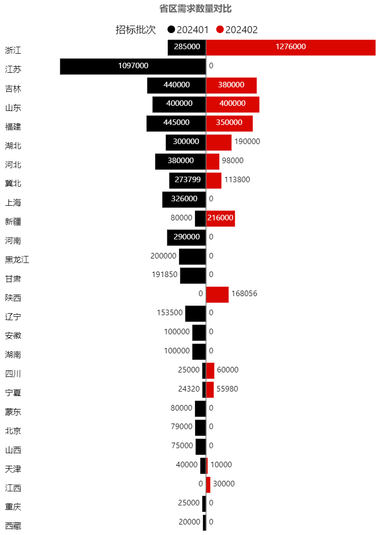 本批次的主要需求來自浙江、福建、吉林,均達到200萬只以上,以上3省需求占批次總量69%左右。