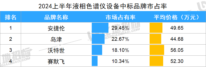 設(shè)備品牌方面,金額市占率較高的品牌有安捷倫、島津、沃特世,市占分別為29.45%、22.67%、18.10%。前3品牌合計(jì)占比達(dá)70%,品牌集中度非常高。