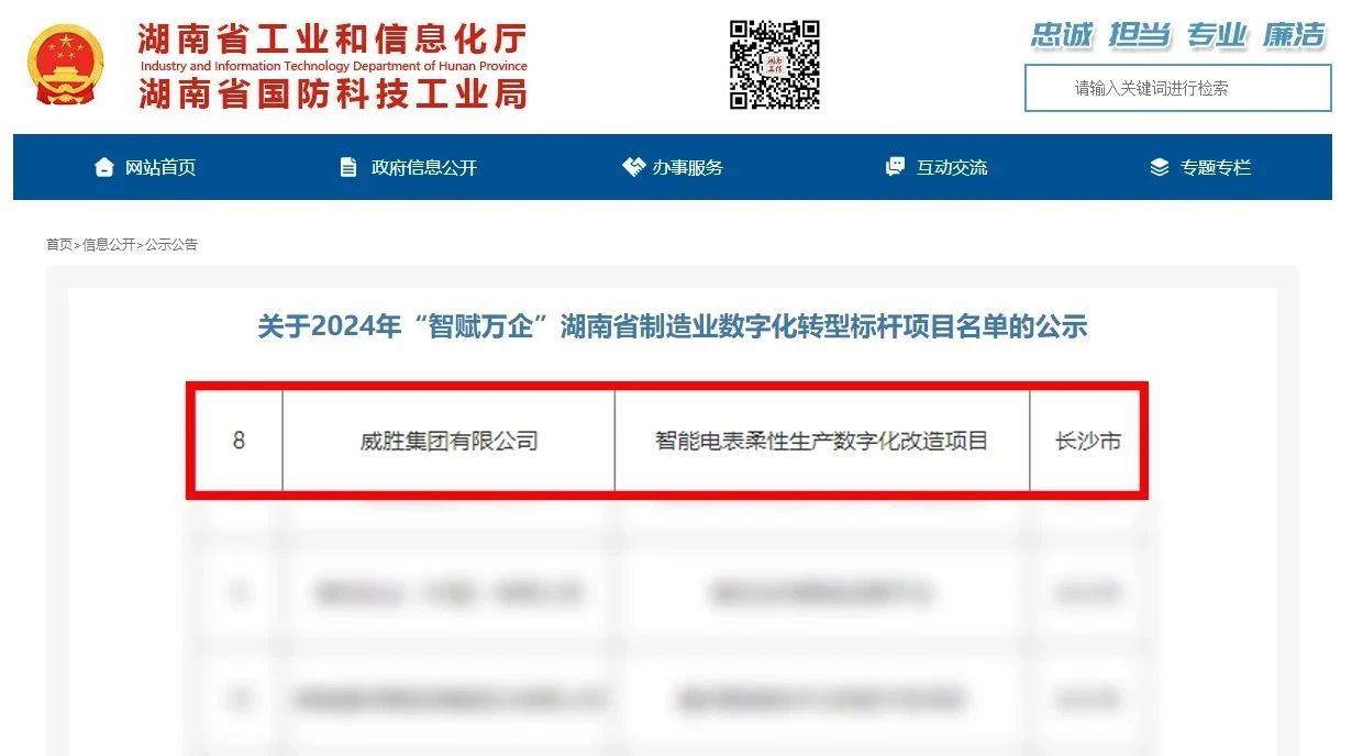 近日,湖南省工信廳公布2024年“智賦萬企”湖南省制造業(yè)數(shù)字化轉(zhuǎn)型標桿項目名單,共計遴選了162個湖南省制造業(yè)數(shù)字化轉(zhuǎn)型標桿項目,威勝集團有限公司的“智能電表柔性生產(chǎn)數(shù)字化改造項目”成功上榜。