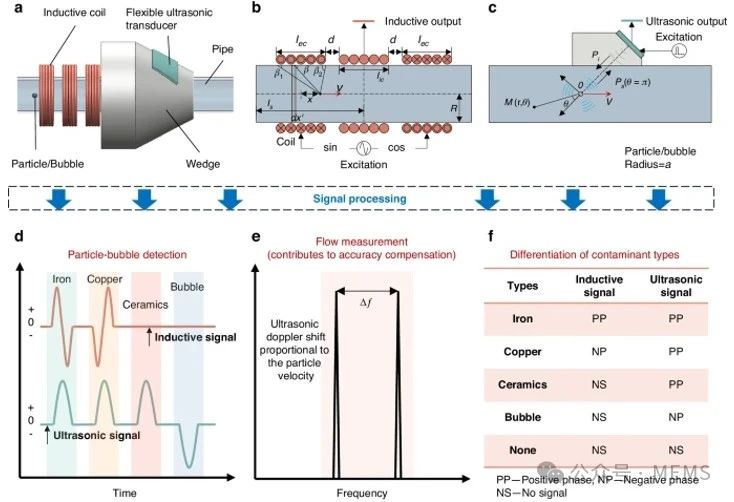該方法在測(cè)量流速的同時(shí)能夠區(qū)分鐵磁性金屬顆粒、非鐵磁性金屬顆粒、非金屬顆粒和氣泡。微機(jī)械加工可以顯著減小傳感器的尺寸,而柔性襯底使安裝更加方便,增強(qiáng)聚焦聲場(chǎng),從而提高檢測(cè)能力。這項(xiàng)研究成果已于近期發(fā)表在Microsystems & Nanoengineering期刊上。