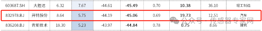 文中,中信證券也附了一份《2024最新績優超跌百強股》名單,績優超跌股指業績優良、市場表現優異,但近期股價過度下跌的股票,其中,傳感器產業鏈企業中,汽車傳感器公司開特股份、CMOS圖像傳感器公司格科微入榜。