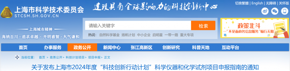 關于發布上海市2024年度科技創新行動計劃科學儀器和化學試劑項目申報指南的通知滬科指南