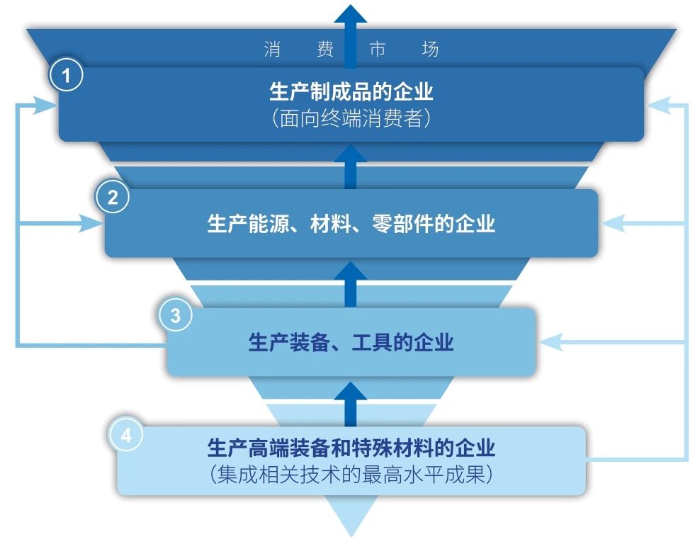 對于制造業而言,產業升級的要求就是第12類企業的工藝改進、效率提升、質量提高,直至生產過程和產品的代際跨越。這也是公眾、金融界和政府關注點最集中的地方。在分工高度發展和產業鏈充分拉長的今天,第12類企業提出的是對生產裝備的精度、效率、可靠性、穩定性和壽命等工藝與技術指標要求,這些要求如何與構建成生產裝備的各門學科、技術的最新成果對應?如何優化組合以最低的成本和代價來實現?這些都是第12類企業自身無法完成的任務。