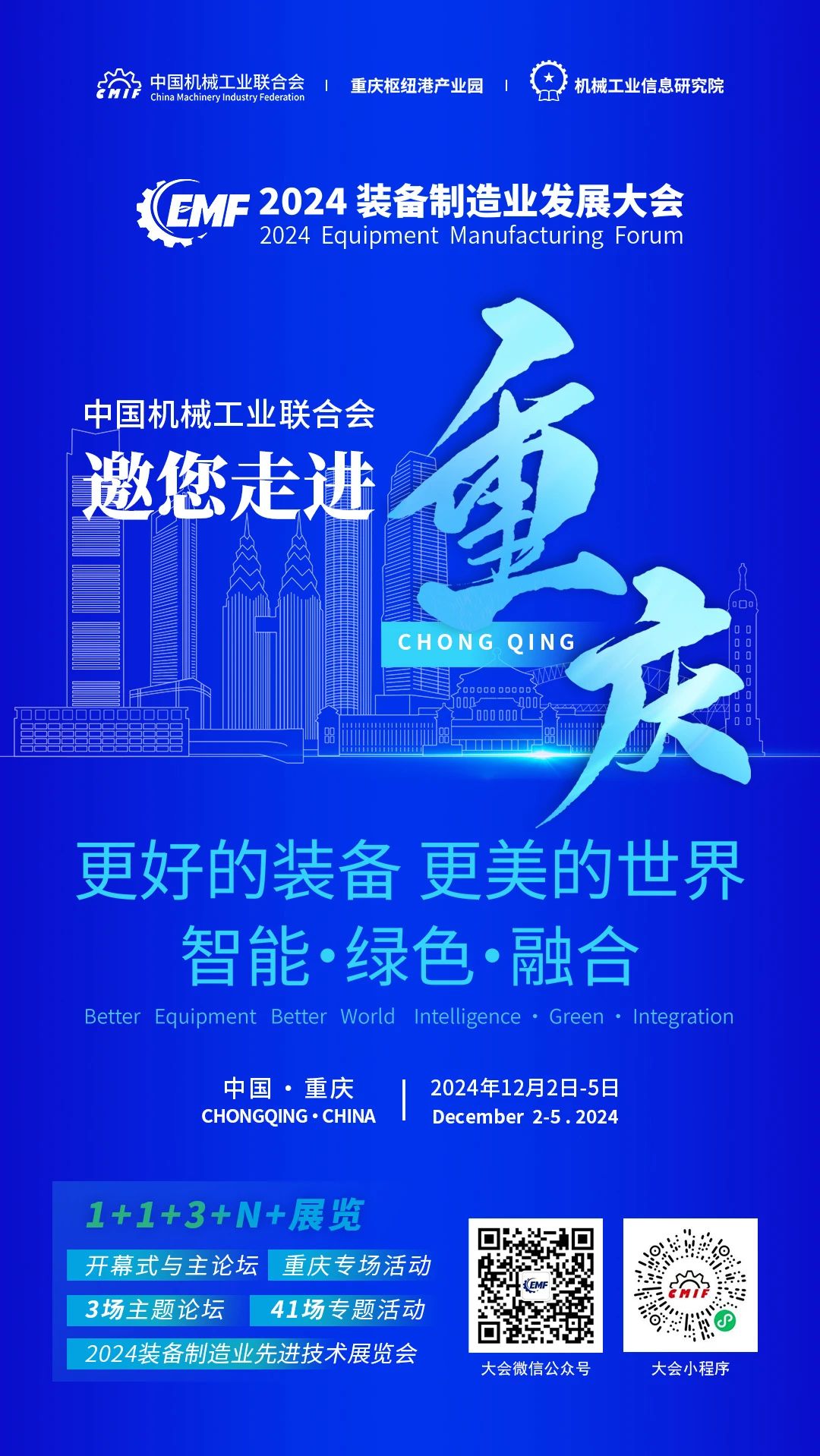 在這里,有裝備制造業的最新成果!在這里,有關于行業發展的最新趨勢!在這里,有你一直期待的未來合作伙伴!即將于122-5日在重慶舉辦的2024裝備制造業發展大會,是我國裝備制造業迄今為止首次舉辦的大型、系統、綜合、涵蓋全產業鏈的產業盛會。