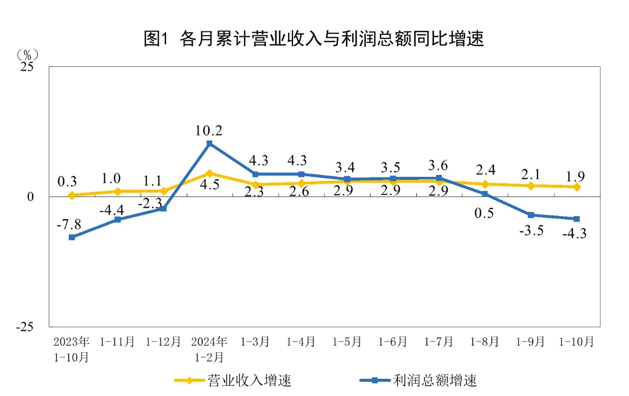 10月份,規模以上工業企業利潤同比下降10.0%
