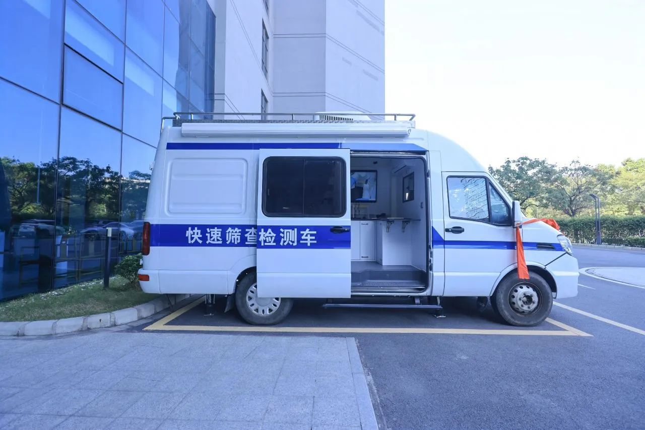 TAPI-TOF 1000M1快速篩查質(zhì)譜移動(dòng)檢測(cè)車也在主持人的宣布下露出真容,等候在展廳門外供來賓近距離參觀體驗(yàn)。