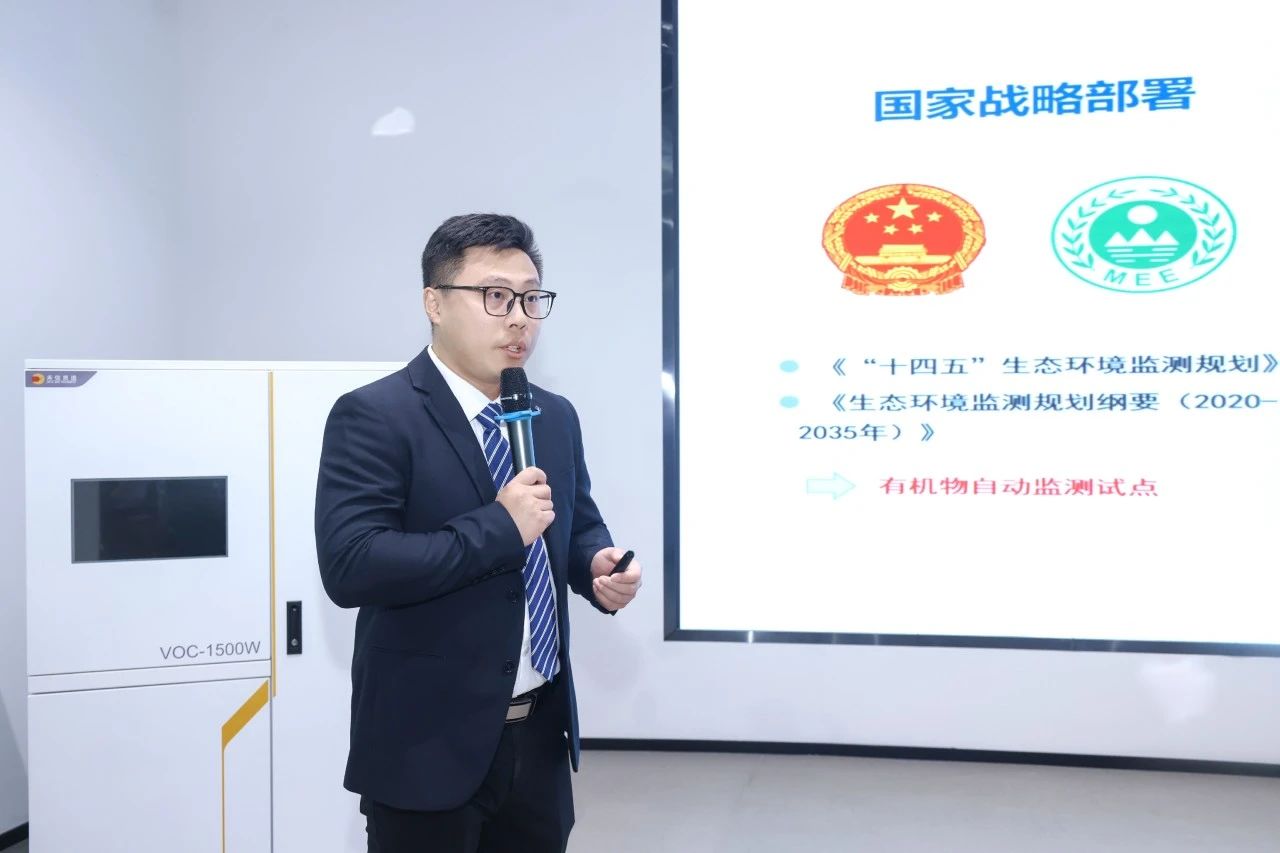 隨后,產(chǎn)品研發(fā)部經(jīng)理譚國(guó)斌博士為大家詳細(xì)介紹了本次發(fā)布的2位家族成員?!?/span>“十四五”生態(tài)環(huán)境監(jiān)測(cè)規(guī)劃》、《生態(tài)環(huán)境監(jiān)測(cè)規(guī)劃綱要(2020-2035年)》等政策法規(guī)中都指出,國(guó)家將建設(shè)有機(jī)物自動(dòng)監(jiān)測(cè)試點(diǎn);水質(zhì)異味投訴頻發(fā)、GB5749-2022新增2項(xiàng)異味指標(biāo)、GB/T 5750-2023引入新檢測(cè)方法;在這樣需求背景下,傳統(tǒng)分析檢測(cè)方法存在手工檢測(cè)時(shí)間滯后、數(shù)據(jù)量少等痛點(diǎn)。另外,我國(guó)食品和農(nóng)產(chǎn)品農(nóng)殘超標(biāo)現(xiàn)狀不容樂觀,傳統(tǒng)快檢技術(shù)存在檢測(cè)項(xiàng)少、目標(biāo)物單一、準(zhǔn)確率低等局限性。農(nóng)殘快速篩查面臨挑戰(zhàn)、急需高效篩查新技術(shù)。針對(duì)以上現(xiàn)狀與需求,禾信儀器集中力量研發(fā)推出了VOC-1500W水中異味和揮發(fā)性有機(jī)物在線自動(dòng)監(jiān)測(cè)系統(tǒng)和TAPI-TOF 1000M1快速篩查質(zhì)譜移動(dòng)檢測(cè)車兩款國(guó)內(nèi)首創(chuàng)的新產(chǎn)品。在未來將助力水質(zhì)檢測(cè)、食品安全、毒品檢測(cè)等更多領(lǐng)域。
