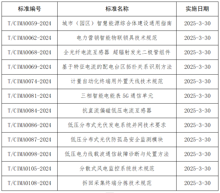 按照《中國儀器儀表行業協會團體標準管理辦法》和《中國儀器儀表行業協會團體標準制定工作細則》,中國儀器儀表行業協會已組織有關單位完成《城市(園區)智慧能源綜合體建設通用指南》等12項團體標準的制定工作,現批準發布。詳情如下: