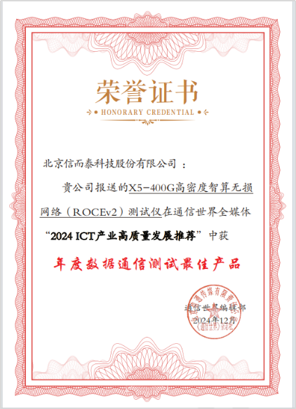當(dāng)前,ICT行業(yè)正經(jīng)歷著前所未有的變革與發(fā)展。隨著5G技術(shù)的廣泛應(yīng)用、云計(jì)算的蓬勃興起以及人工智能與物聯(lián)網(wǎng)的深度融合,行業(yè)競(jìng)爭(zhēng)愈發(fā)激烈,ICT企業(yè)逐鹿行業(yè)前沿,或攻堅(jiān)技術(shù),或打磨產(chǎn)品,或拓展應(yīng)用,全力探索高質(zhì)量發(fā)展之路。12月18日,2025 ICT行業(yè)趨勢(shì)年會(huì)在北京舉辦。會(huì)議期間,通信世界“2024 ICT產(chǎn)業(yè)高質(zhì)量發(fā)展推薦”正式發(fā)布。“X5-400G高密度智算無(wú)損網(wǎng)絡(luò)(ROCEv2)測(cè)試儀”入選“2024 ICT產(chǎn)業(yè)高質(zhì)量發(fā)展推薦”。