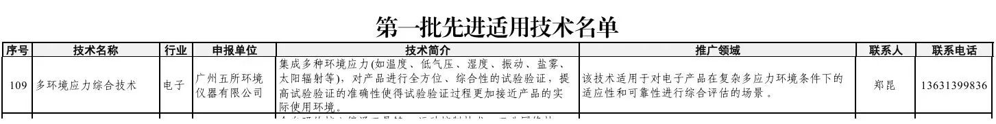 近日,廣五所公司自主研發(fā)的“多環(huán)境應(yīng)力綜合技術(shù)”成功入選工業(yè)和信息化部第一批先進(jìn)適用技術(shù)名單(全國僅111項(xiàng))。標(biāo)志著我公司在環(huán)境試驗(yàn)設(shè)備領(lǐng)域的技術(shù)創(chuàng)新實(shí)力再獲權(quán)威認(rèn)可!