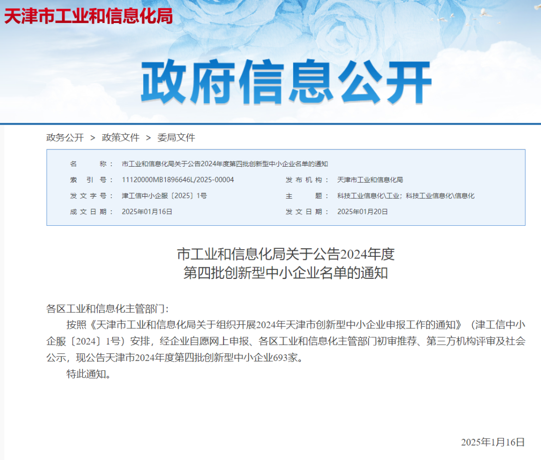 2025年1月20日,天津市經濟和信息化局正式發(fā)布了《2024年度第四批創(chuàng)新型中小企業(yè)公告名單》,東西分析儀器(天津)有限公司(簡稱:東西分析)順利通過了“創(chuàng)新型中小企業(yè)”認定,成功入選榜單。這不僅是對“東西分析”持續(xù)創(chuàng)新能力的認可,也標志著其在行業(yè)中的競爭力和影響力的提升。