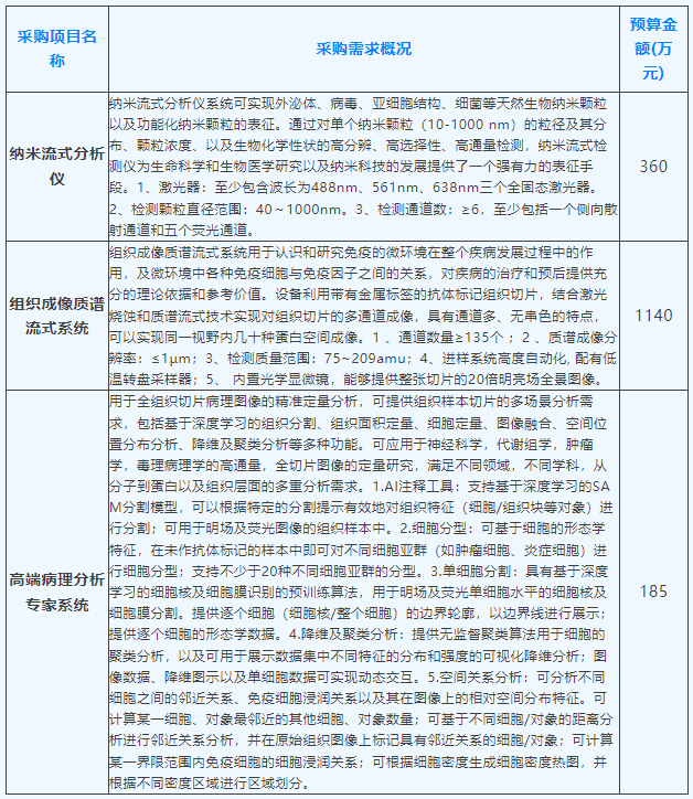 為便于供應(yīng)商及時了解政府采購信息,根據(jù)《財政部關(guān)于開展政府采購意向公開工作的通知》(財庫〔2020〕10號)等有關(guān)規(guī)定,清華大學(xué)2025年4月政府采購意向有納米流式分析儀、組織成像質(zhì)譜流式系統(tǒng)和高端病理分析專家系統(tǒng),現(xiàn)公開如下: