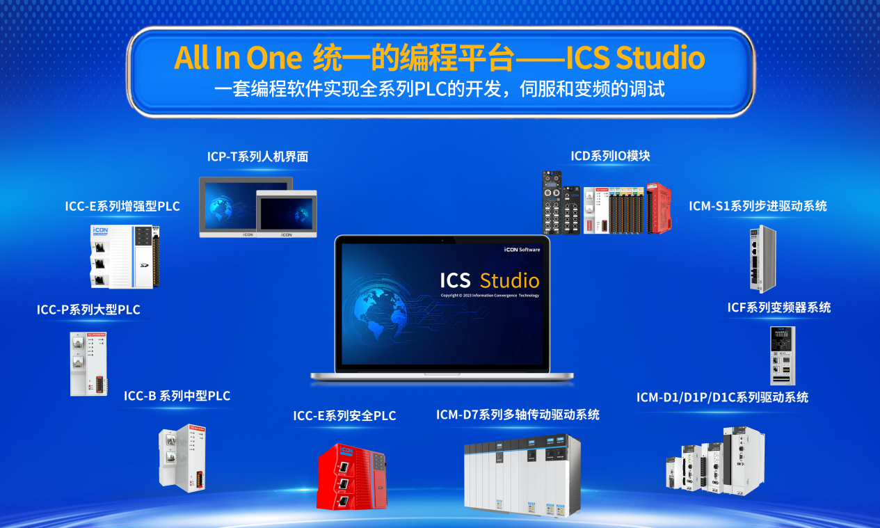 英孚康自研ICC系列控制器全系產(chǎn)品覆蓋中大型可編程控制器。在標準工業(yè)以太網(wǎng)網(wǎng)絡協(xié)議基礎上集成了運動控制,配合ICS Studio應用程序軟件,為更廣泛系列的機器提供可擴展運動選項,為機器制造商提供全面解決方案。