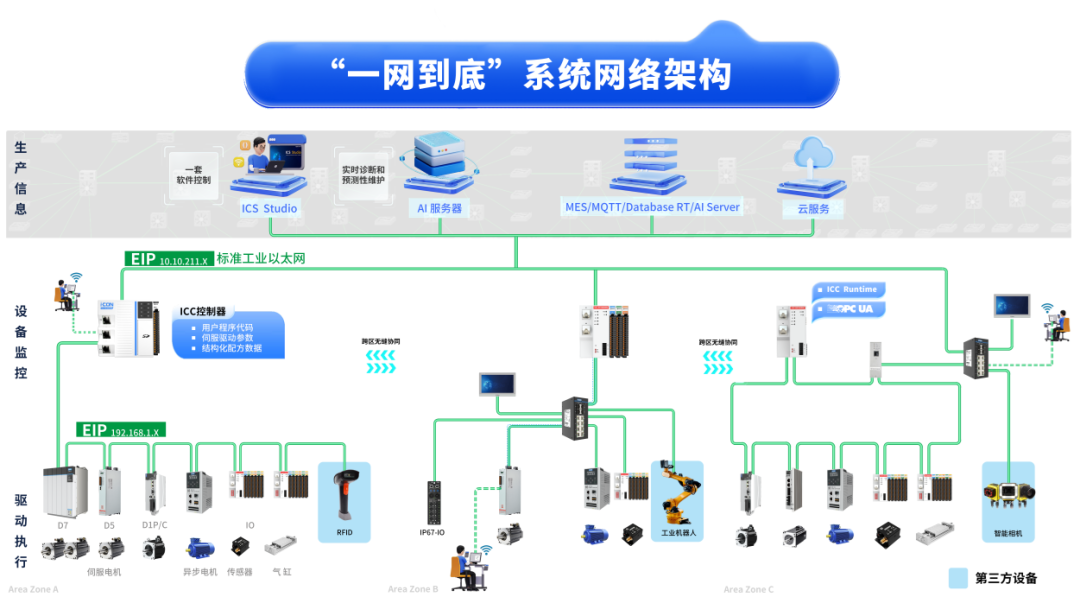 “一網(wǎng)到底”架構打破數(shù)據(jù)孤島,深度融合IT與OT,為工藝優(yōu)化、異常回溯、預測性維護以及5G工業(yè)互聯(lián)提供數(shù)據(jù)支撐。通過確定性傳輸和低延遲技術,確保關鍵數(shù)據(jù)實時、準確傳遞,為智能工廠建設奠定堅實基礎。