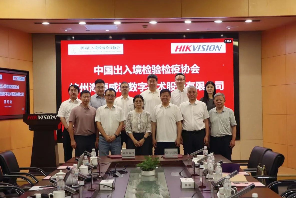 近日,中國出入境檢驗檢疫協會與杭州海康威視數字技術股份有限公司(以下簡稱“海康威視”)合作協議簽署儀式在杭州舉行。中國出入境檢驗檢疫協會會長王新、海康威視高級副總裁黃方紅出席儀式,協會副秘書長張琳與海康威視海關行業總監錢云峰分別代表雙方簽署合作協議。