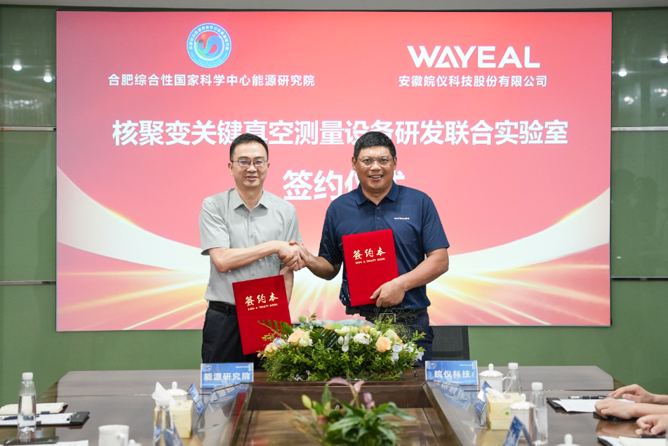 2025622日,安徽皖儀科技股份有限公司(以下簡稱皖儀科技)與合肥綜合性國家科學中心能源研究院(以下簡稱能源研究院)正式簽署合作協議,共同成立核聚變關鍵真空測量設備研發聯合實驗室。此次合作旨在推動我國核聚變領域關鍵技術的自主創新,解決高端真空測量裝備卡脖子問題,助力國家能源安全、能源技術發展。