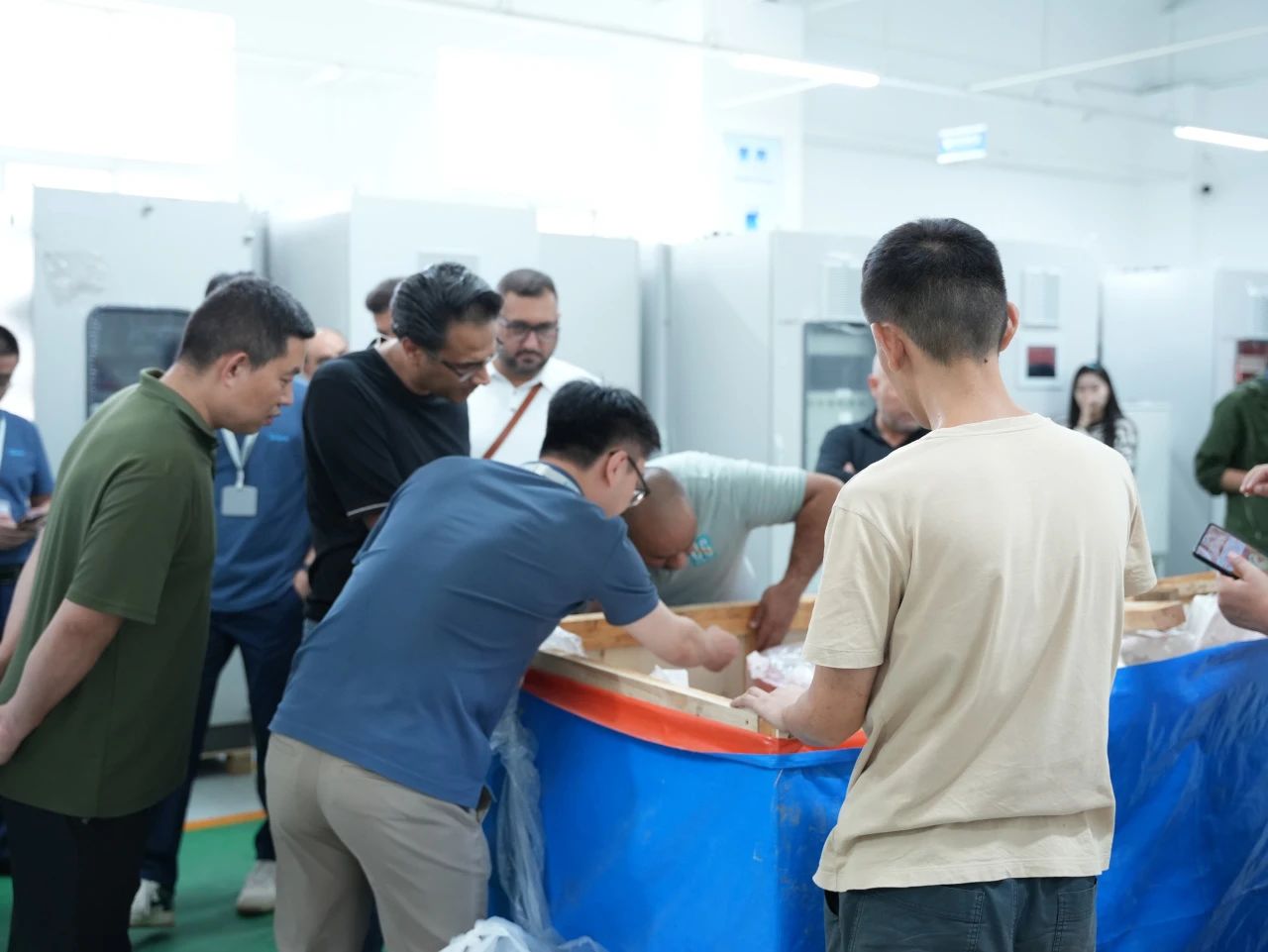 21日,東巴格達油田技術團隊一行前往工廠車間進行實地參觀與交流。在專業人員的陪同講解下,團隊深入了解了超聲流量計產品的生產、工藝與應用性能,并現場見證了檢測流程。除此之外,雙方還針對本次項目所用設備進行了嚴格的FAT試驗,確保了產品品質的精確、穩定、優質。