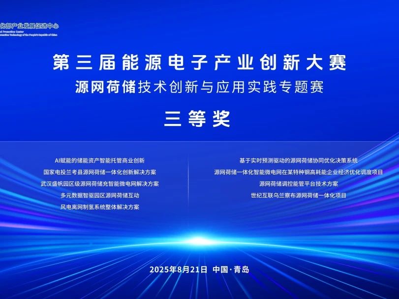 近日,第三屆能源電子產(chǎn)業(yè)創(chuàng)新大賽源網(wǎng)荷儲技術(shù)創(chuàng)新與應(yīng)用實(shí)踐專題賽決賽暨典型作品交流會(huì)在山東青島舉辦。