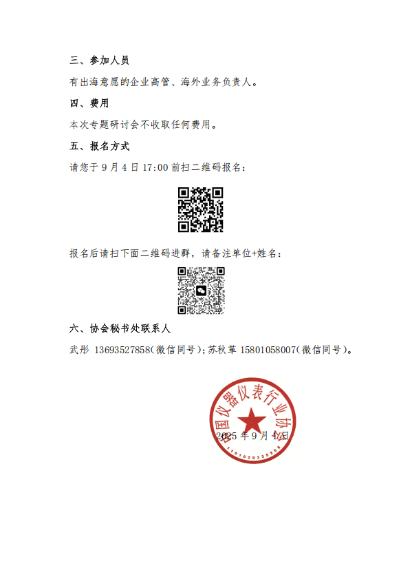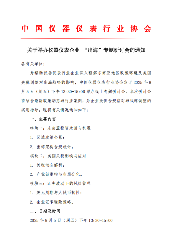 關于舉辦儀器儀表企業 “出?!睂n}研討會的通知