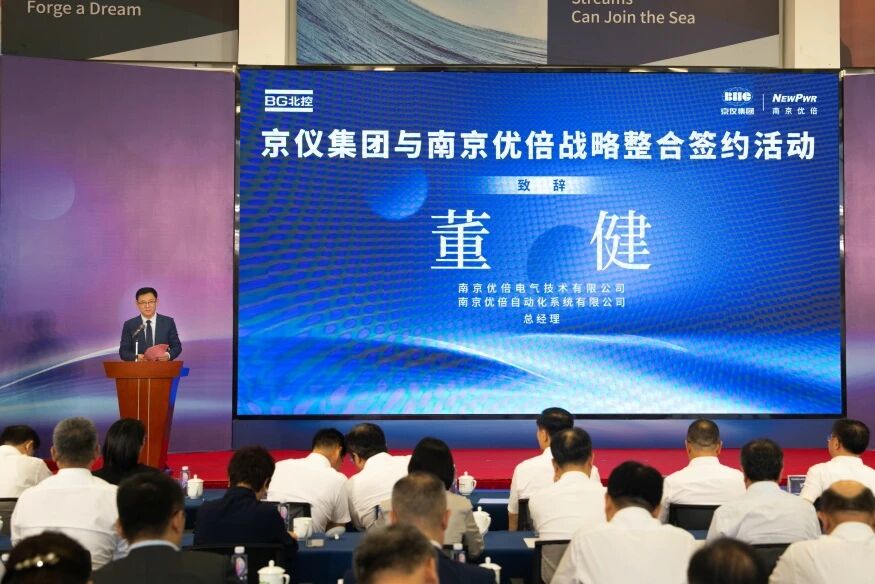 在北控集團、江寧區及江寧開發區有關領導,中國儀表儀表學會、協會,儀綜所,清華大學精密儀器系,上海自動化院,南陽防爆所,中國石油和化工自控專委會,國標委TC124\SC2等行業專家,康吉森、科遠智慧、菲尼克斯和天康集團等國內儀器儀表行業重點企業負責人共同見證下,京儀集團與南京優倍完成戰略整合簽約。