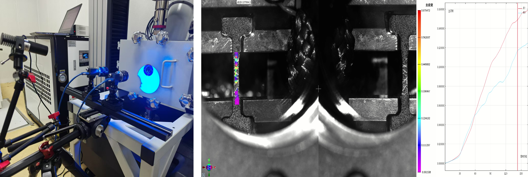 在科研和工程測試領域,極端高溫、深低溫以及高速動態(tài)等苛刻環(huán)境對力學性能測試提出了更高要求。傳統(tǒng)接觸式傳感器在此類條件下往往難以可靠工作;常規(guī)雙目立體DIC受制于設備布置與環(huán)境干擾,也難以獲得穩(wěn)定、準確的全場應變數(shù)據(jù)。